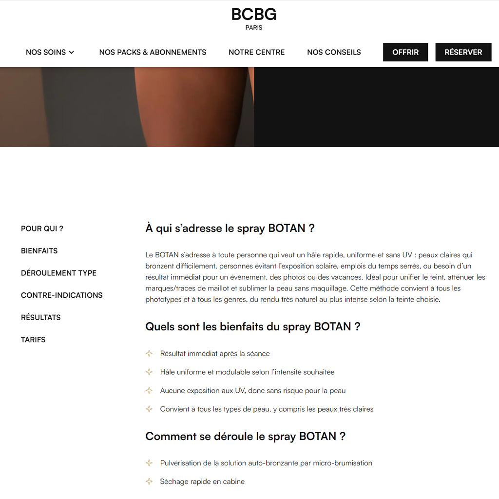 Le Spray Tan est une requête spécifique, recherchée et différenciante. Pour optimiser votre référencement, cette prestation doit exister comme une spécialité à part entière.
